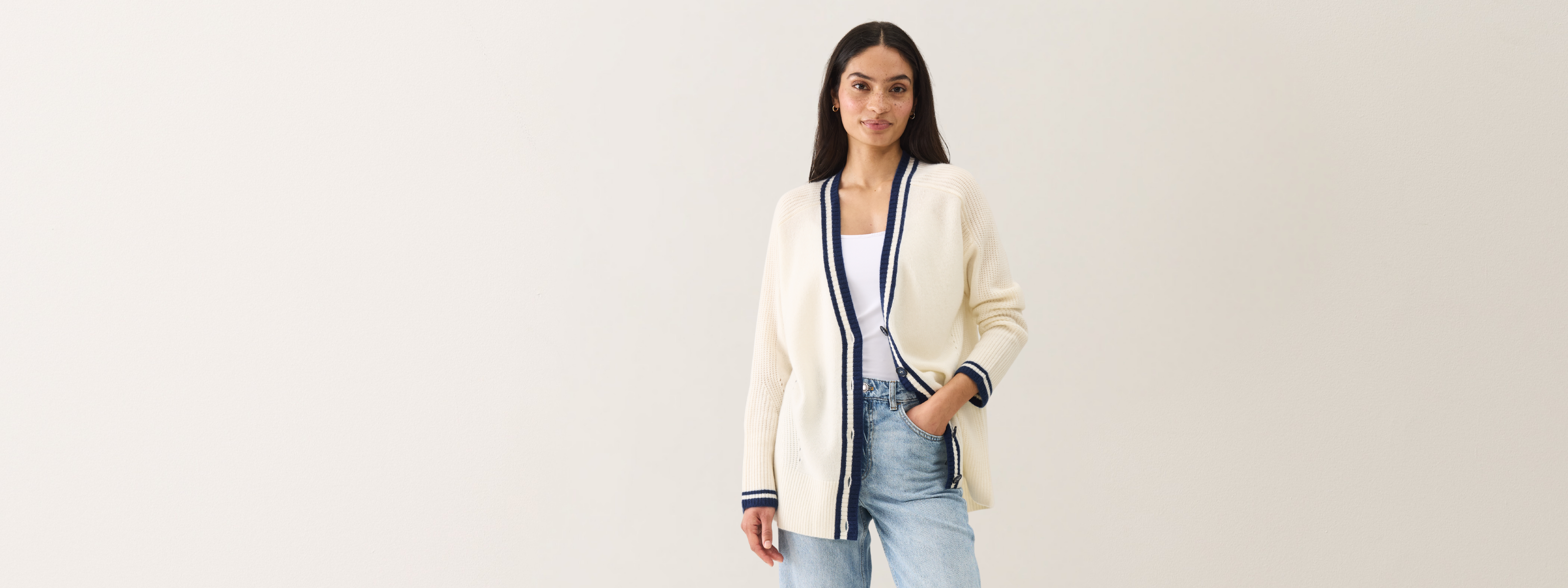 This season, we revisit the iconic cricket knit with two hero pieces: a longline cardigan and a V-neck sweater inspired by the traditional sporting style. Crafted from 100% luxuriously soft cashmere, they blend heritage design with modern versatility — destined to become your new forever favourites.